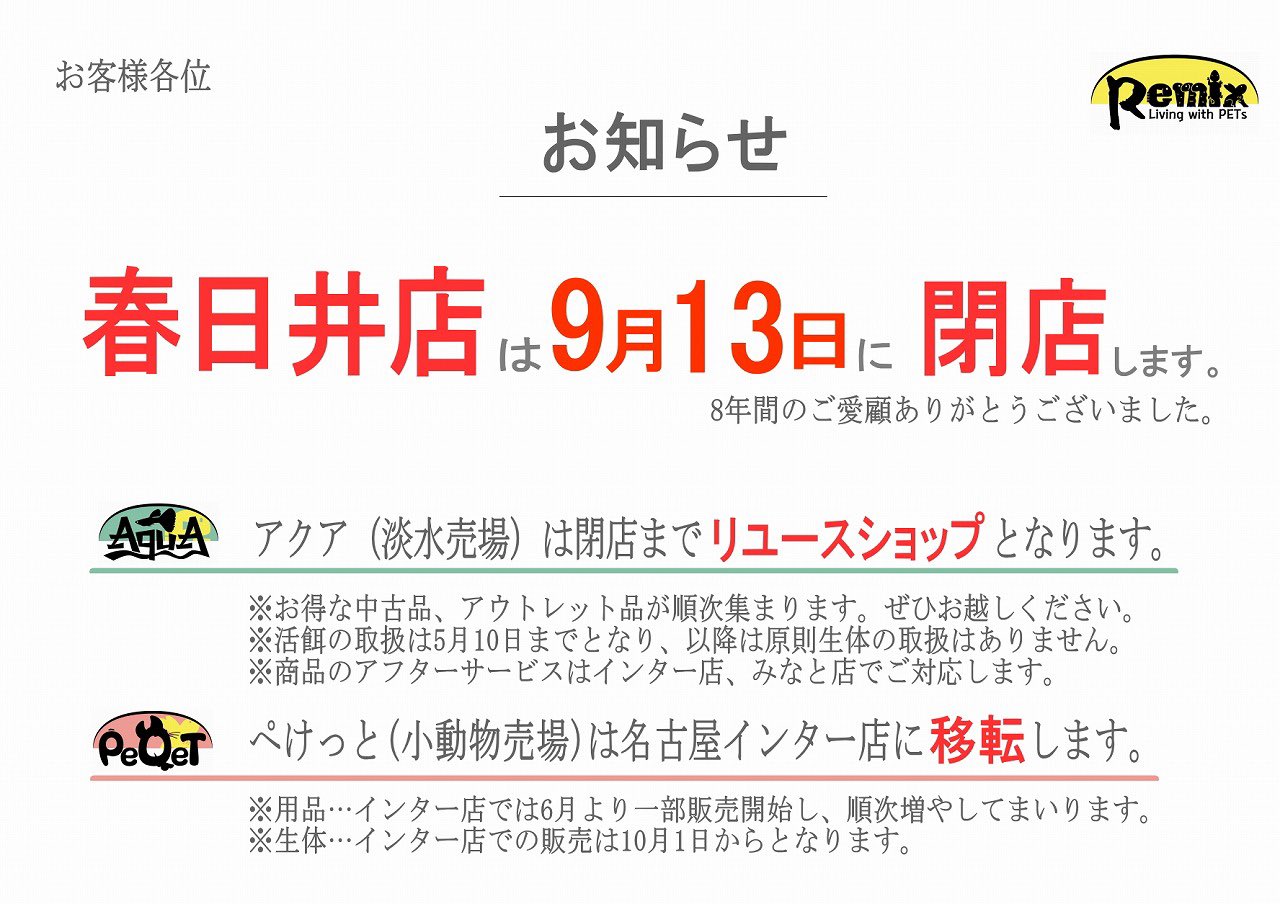春日井店9月13日閉店
