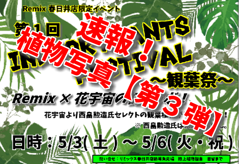 ど~も観葉植物担当の吉留です。 今回は残りの植物の写真を全部アップします。 園芸店ではなかなかお目にかかれない植物たちをイベント期間中に見に来て下さい。 イベント期間が終わると店頭から無くなる植物もありますのでお気をつけ … 続きを読む Indoor Plants Festival植物写真第3弾【春日井熱帯魚】
