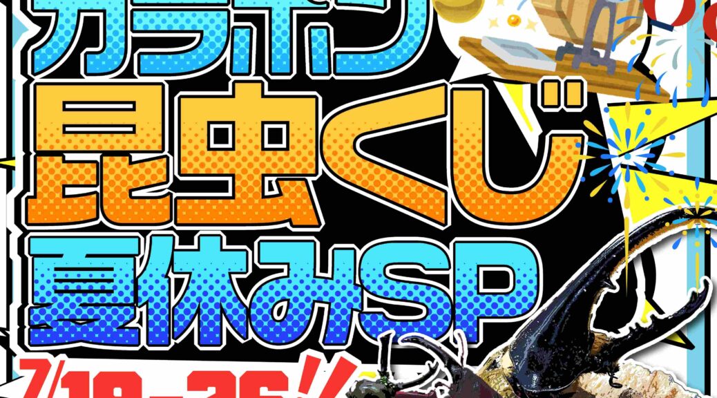 【春日井ぺけっと・昆虫】2025.7.14 こんにちは~(*^^*)春日井ぺけっとの森本です! 今年は春日井店にて昆虫くじ開催中!!毎回たくさんの方にご来店いただいております(^^)そんな昆虫くじは夏休みバージョンへと変 … 続きを読む 【春日井ぺけっと・昆虫】ガラポン昆虫くじは夏休みSP!!!【告知】