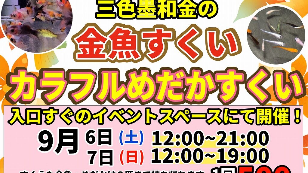 まもなく9月を迎えますが、まだまだ残暑というより酷暑!いつまで続くのでしょうか?この暑さは、、、(泣)暑いのはツライところですが、それでも夏が終わるのは少々、寂しい気もします、、、(ノД`)シクシクやはり暑いのは耐え難い … 続きを読む 金魚・めだかすくい再来!