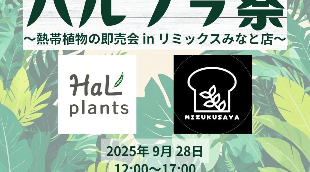 店内イベント ハルプラ祭 2025年9月28日 12:00~17:00 はる HaL plants様 @HaL_plants8284 https://x.com/HaL_plants8284 W草屋W (水草屋さん)様@ … 続きを読む ハルプラ祭 9/28