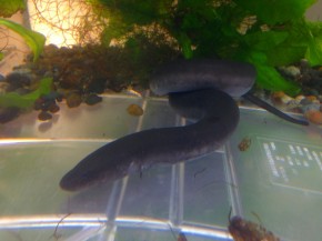 完全水棲の鰻型大型有尾類。ほぼ退化した四肢は、ちょこんと可愛く辛うじて存在。