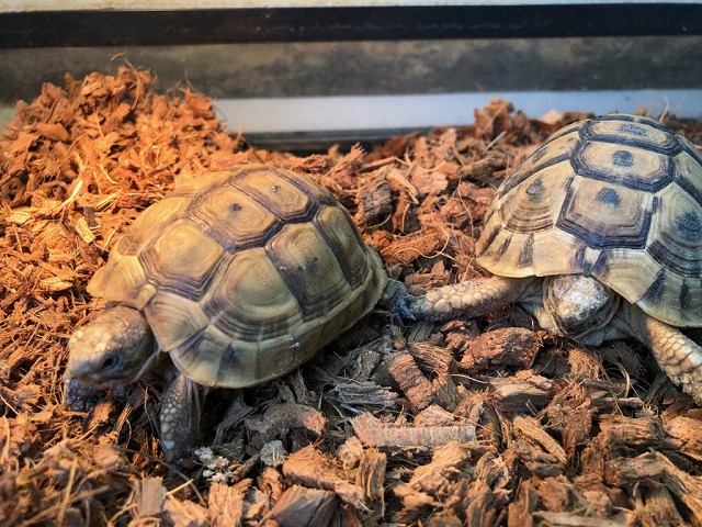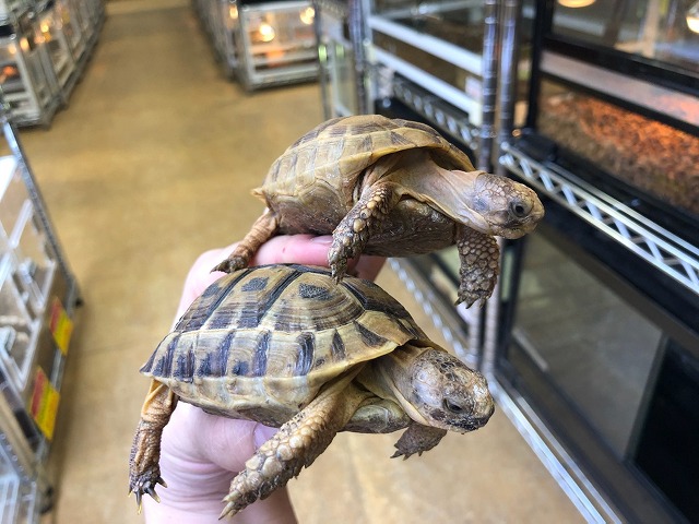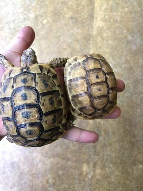 通常のギリシャリクガメより恥ずかしがり屋で最初はなかなかご飯を食べてくれないのですが、今回は入荷直後に野菜を爆食した優秀なコ達です。
