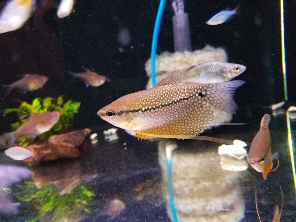 クラウンローチとバガリウスを入れたらグッと発色がよくなりました。キレイな個体です。
