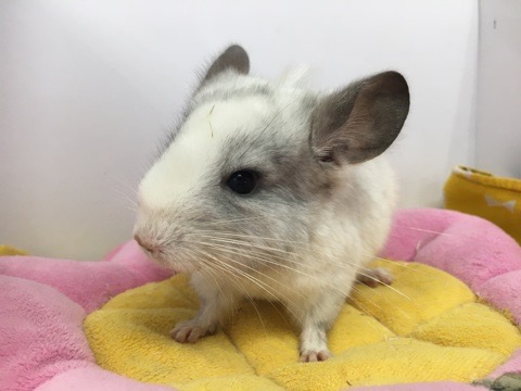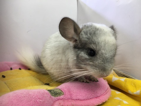 今回の子たち黒い柄の入り方が個人的に最高にツボです!!うっすら鉢割れっぽい模様にうるうるの瞳…入店してきたときはどこのモデルチンチラさんかと思いました(笑)