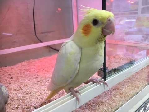 ほんのりひよこ色にオレンジのチークが超キュートです💕💕オカメインコの中ではノーマルを差し置いて最もメジャーなカラーと言っても過言ではないのでしょうか?
