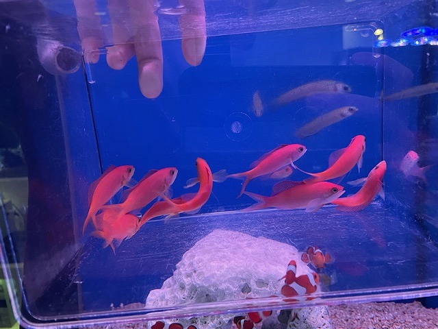 3月 25, 2021 入荷情報!ボロカサゴ入荷! Posted in : 春日井海水魚ブログ on 2021年3月25日 by : 春日井店 海水魚コーナー こんにちは野田です。 今日は入荷情報をお伝えしていきます! ウズマキ ±9cm 体の渦巻き模様が特徴的なヤッコ。成長すると全く異なる体色になり、名前もタテジマキンチャクダイに変わります。 ペルクラクラウン ±5cm シャープノーズラス ±5cm 褐色の体色に白い線が入るベラ。おちょぼ口が特徴的なかわいいベラです。 オレンジストライプバスレット ±4cm、±6cm オランジの体色に薄いブルーのストライプ模様が特徴的なバスレット。リーフタンクにいかがでしょうか? シマハタタテダイ 幼魚 ±5cm 立派な旗が特徴的なおなじみのチョウチョウウオ。今回の個体は少し小さめです。 シマヤッコ ±7cm 白と黒の縞模様に黄色いお腹のヤッコ。一見チョウチョウウオに見える体色ですがヤッコの仲間。人気の高い魚なので検討中の方はお早めに! ボロカサゴ ±13cm 今回の目玉生体!脱皮をする珍しい生態を持つカサゴの仲間。今回の個体は褐色の個体で美しいです! アカネハナゴイ カクレクマノミ ペア ±5㎝、±7cm ヒレナガスズメダイ 幼魚 ±4cm 黄色の体色に紺色の線が入る変わった形のスズメダイ。成魚になると体色と体型が変わっていくので、変化を見るのも面白いです。 タテジマヤッコ ±5cm 白い体色に黒の線が入るヤッコ。横縞なのに名前は縦縞?と思うかもしれませんが、魚の縞模様は頭を上にしたときに縦か横かを判断するので、この子はタテジマなんです。 セスジヨウジウオ ±5cm 茶褐色の体と背中に一本淡い青いラインが入るヨウジウオ。かわいいサイズです。 エメラルドグリーンクラブ ホワイトソックス 以上です! 気になる生体、商品のお問い合わせは 0568-35-7147 海水担当まで。 それでは、ご来店お待ちしております! ※春日井店は他の2店舗と営業時間が大きく異なります。ご確認の上ご来店下さい。 平日は15時から21時 土、日曜、祝日は12時から21時です。 ※住宅地にある店舗ですので近隣の皆様の迷惑にならぬようご配慮お願いいたします。