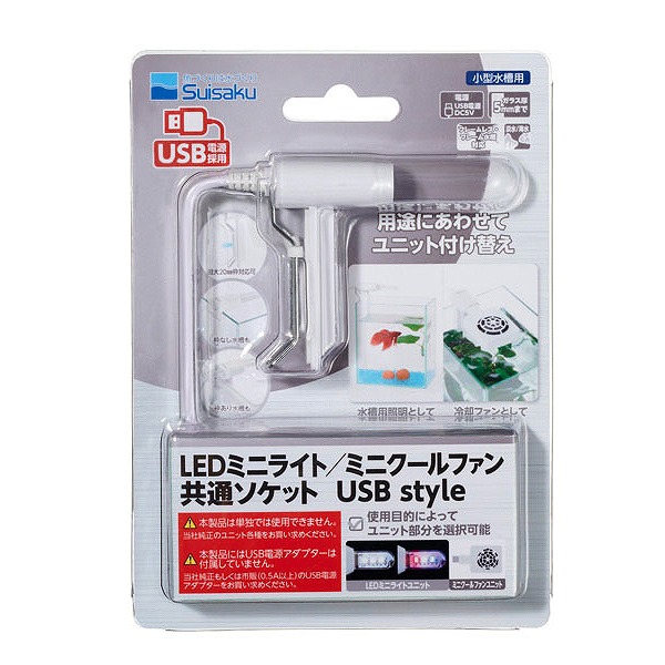LED接続時は下記写真の様子。水槽に挟みこんでのご使用になります。