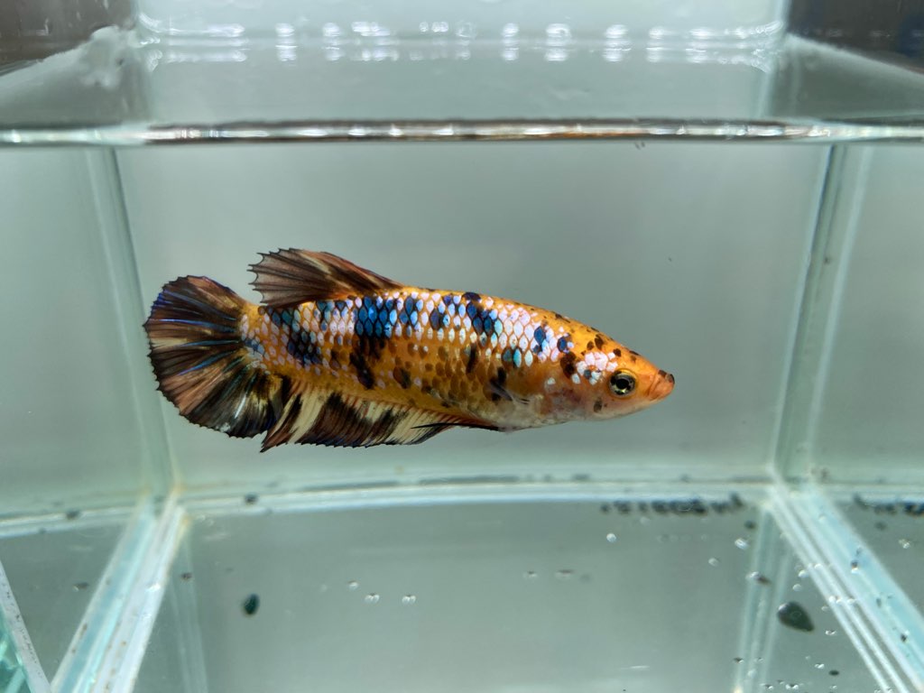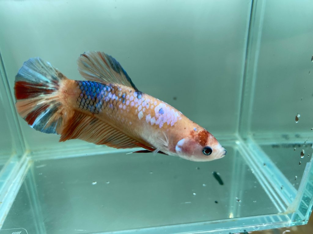 シンフォニーはベタ スマラグディナやベタ マハチャイエンシスなどの血が入っておりワイルドベタに近しい細身の体型でワイルドフォームとも呼ばれる改良グループです。僕も大好きなベタです!環境に馴染むと徐々に発色し始めます。また、光を当てる加減でまるで別の個体かと思うほど体色が変化します。
