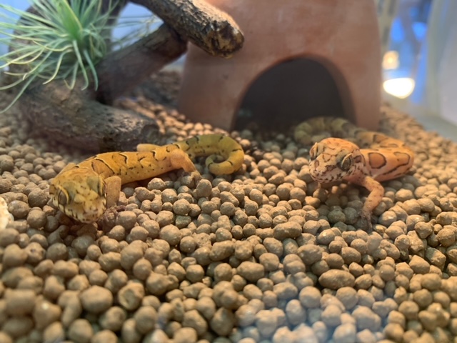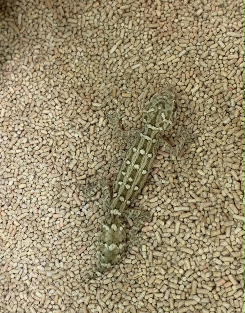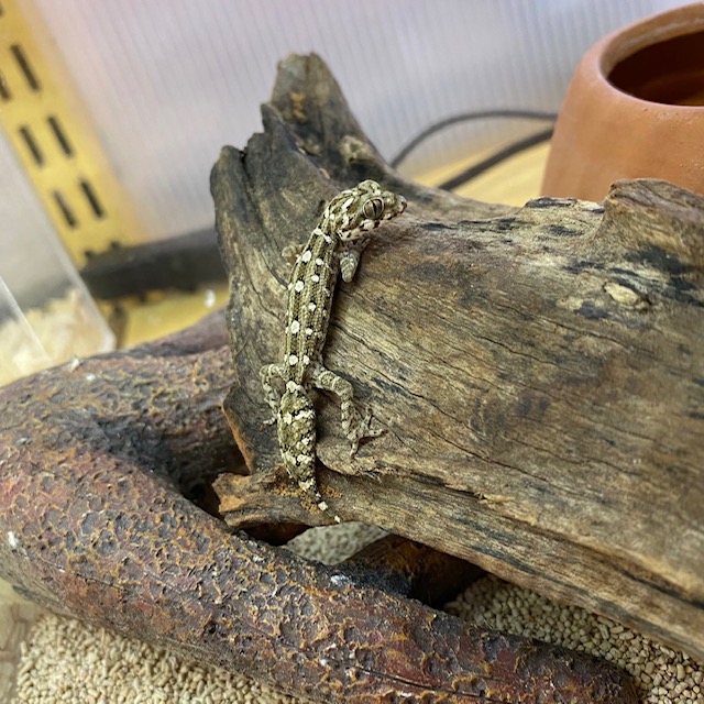 一応ホソユビヤモリの仲間ですが地上棲で乾燥した環境を好むので、表面積の大きいケージで乾燥した環境を作ってあげ、一部スポットライトで照らしてあげるとGOOD!