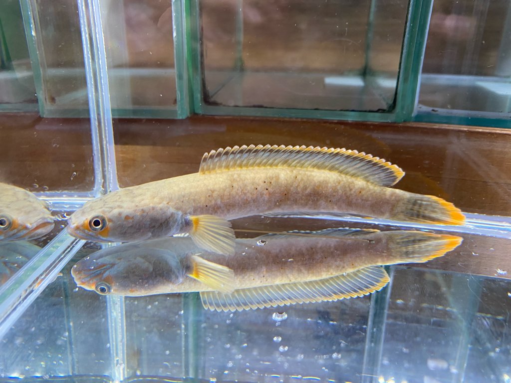 ミャンマーに生息する中型のスネークヘッドで、目の周辺が赤く染まることから歌舞伎(カブキ)とも呼ばれています。慣れてくると近寄ってきて餌くれアピールして愛くるしいです。
