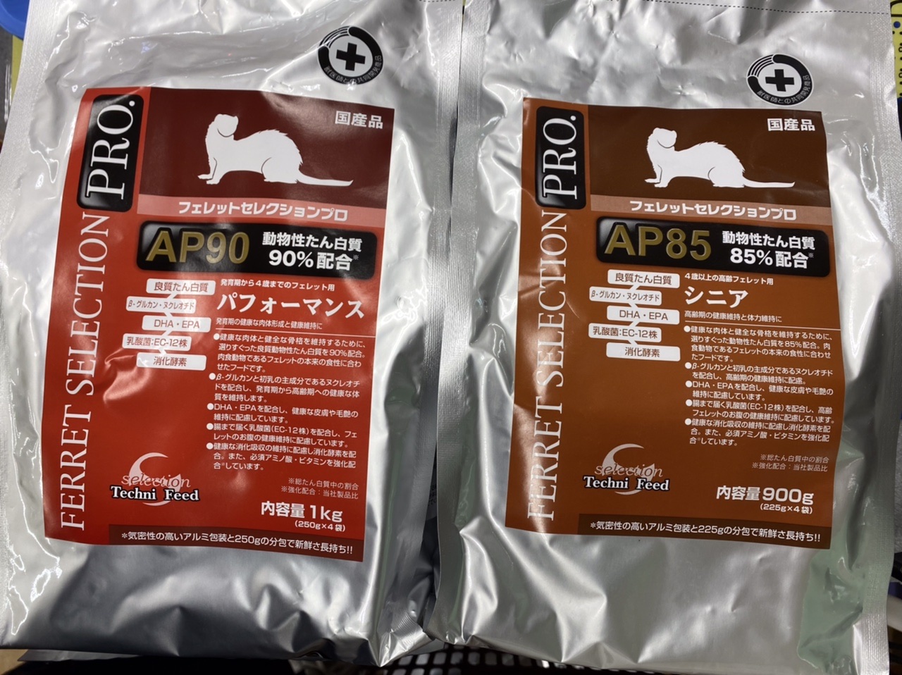 健全な骨格と健康な肉体を維持するために、肉食動物のフェレットの本来の食性に合わせて「良質動物性タンパク質」が90%配合されています♪
