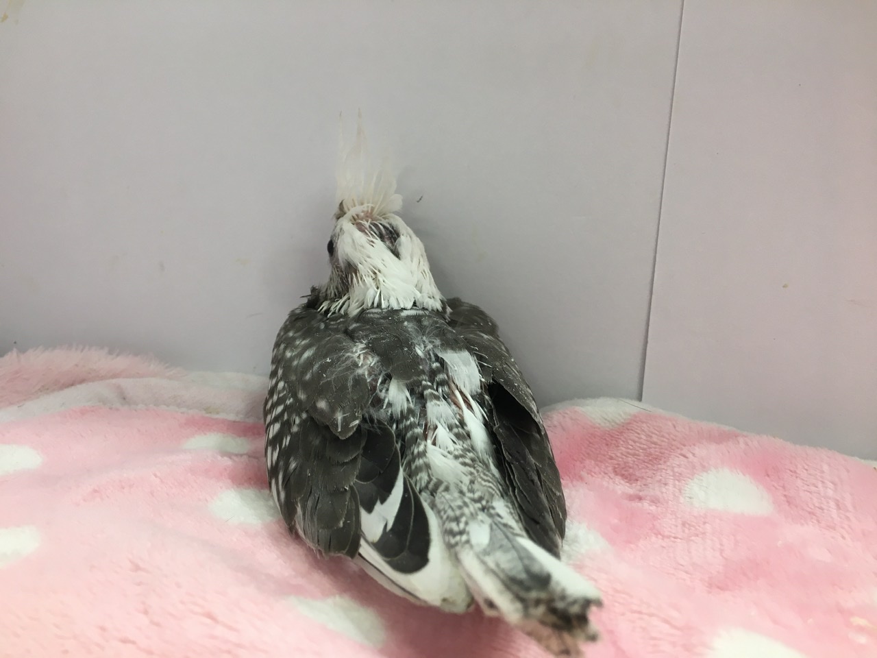 グレーの羽根に白い模様はまるで雪が降っているかのようです⛄️❄️お顔にチークの無いオカメも新鮮でかわいいですよね♪♪