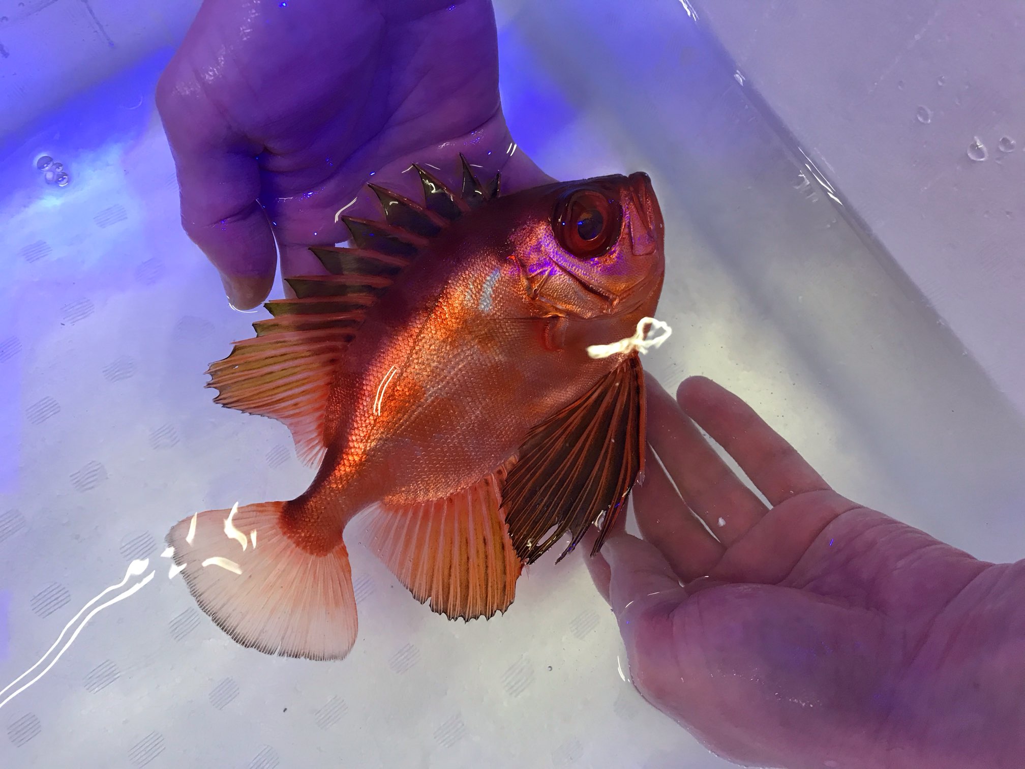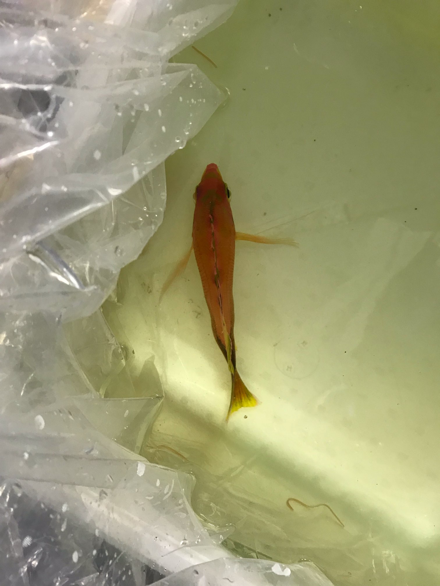 入荷はレアめで、背ビレがちょこっと黒いのが特徴です