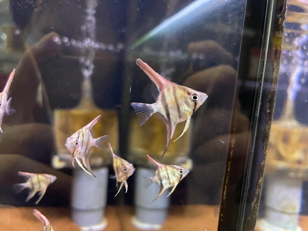 アルタムの様にヒレが長くシルエットがキレイになるエンゼル。またまだ小さいですが10㎝ほどになるとコロンビアのアルタムに負けず劣らずキレイになります。