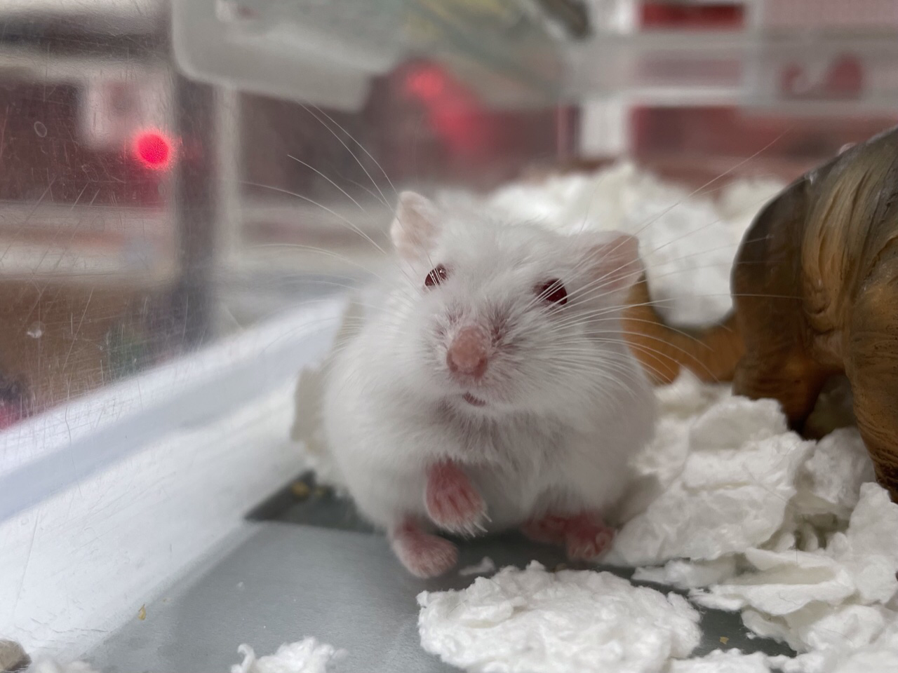 真っ白で赤目のアルビノカラーがオスメス2匹ずつやってきましたよ🐹🐹💗