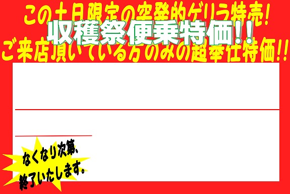 毎週やっている土日限定特売の収穫祭ver.です!!