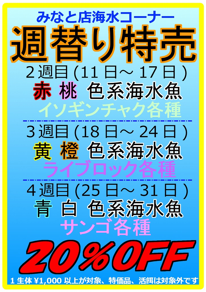 青色or白色が入る海水魚がどれでも20%オフ‼