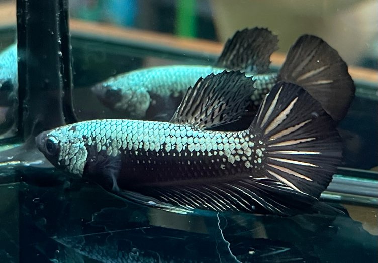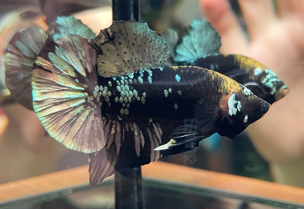 これは綺麗すぎますね!なんとも言えない表現でビビッと来てセレクトしました。この子は今回仕入れたベタの中でトップクラスに高価でした。黒さが深いのと、カラーリングが唯一無二。玄人好みですが好きな方は好きなカラーリングかと思います。