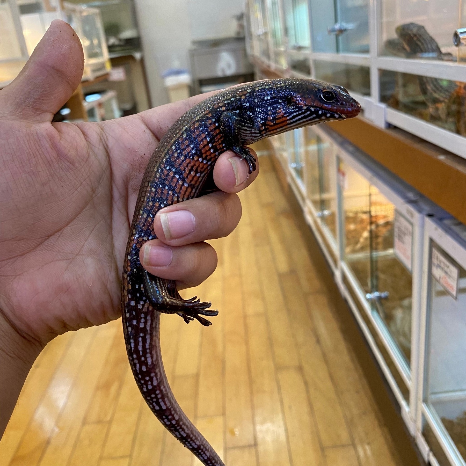 手頃な片手サイズで丈夫、色味もかっこいい人気リザード!繰り返しハンドリングをすることで持たれても落ち着くようになります!安心可のあるサイズで入荷!