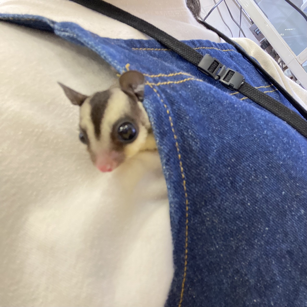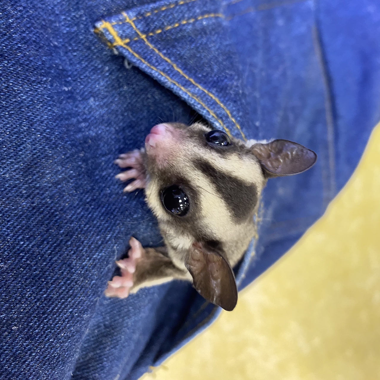 フクロモモンガ はコアラやカンガルーと同じ有袋類に分類されます!名前に「フクロ」がついている通りポーチの中やポケットの中など暗くて狭い場所が大好き💗見つけるとサッ!と入っていきます笑