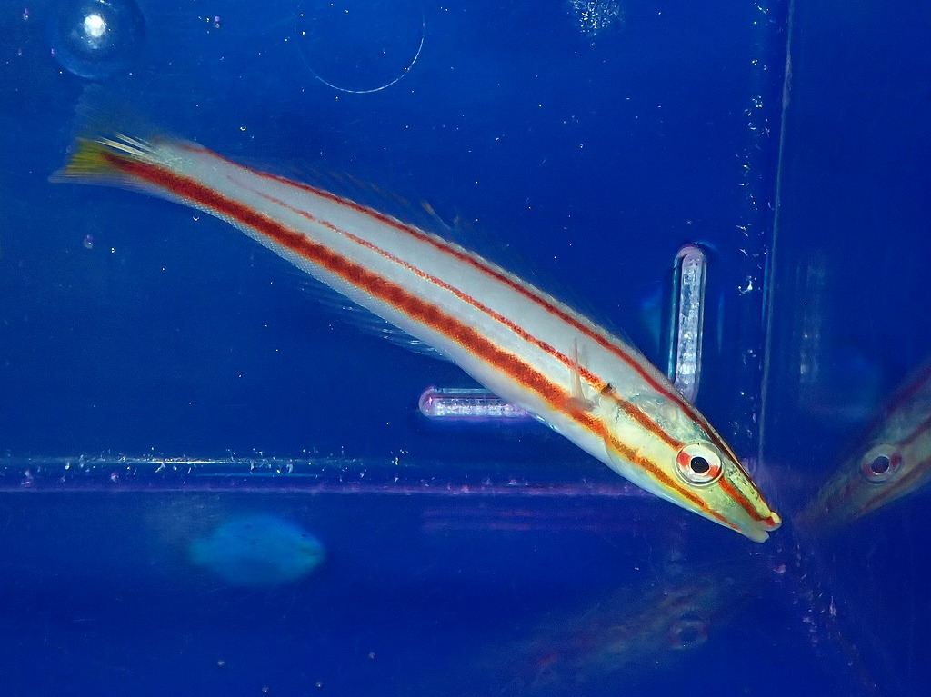 写真を取ろうとすると警戒色になってしまうので写真はこのような感じですが落ち着くとフタイロカエルウオとヒトスジギンポを足したような色合いです!