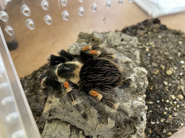 赤、青、緑の配色がとても綺麗なタランチュラです。
