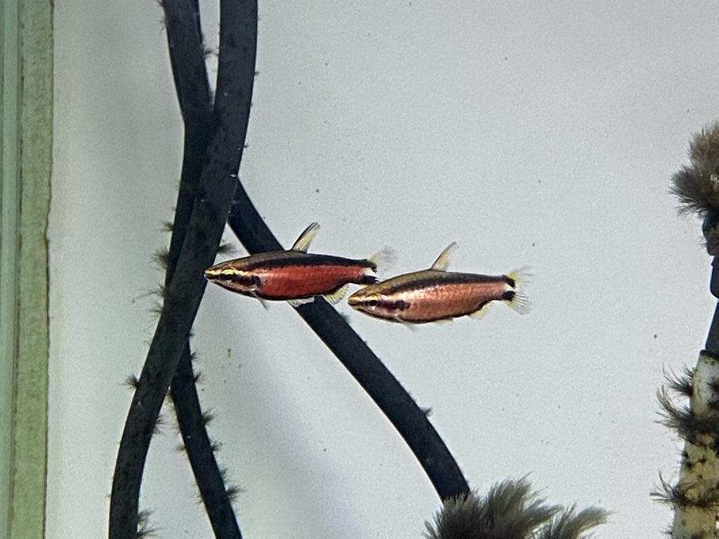 真っ赤なボディと縁取るように黒ラインがくっきり入って綺麗です。これからの発色に期待大です。おすが二匹入荷してます。