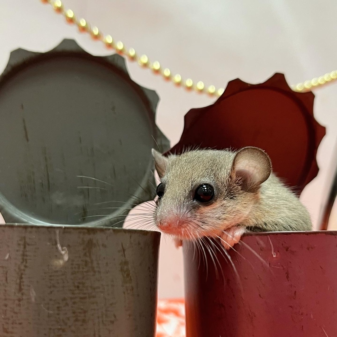 つぶらな瞳にふさふさ・ふわふわの尻尾、ちんまりとした体と本当に可愛い小さなネズミです♪