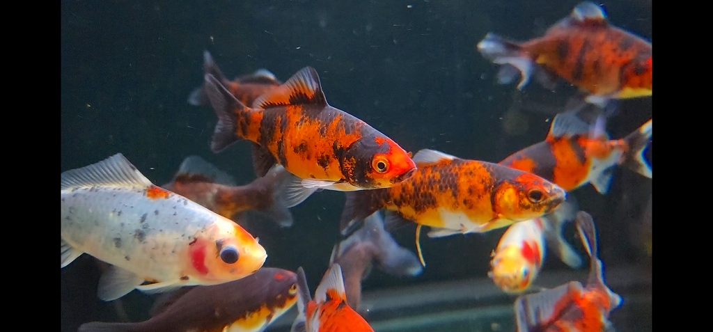 貴重な平尾和金の極上モノ。墨の濃さが抜群に良く、虎柄個体は言わずもがな、黒々した雰囲気がキビキビとした動きにに相まって非常にカッコよく、プロポーションも美しい将来性抜群の個体たちです。