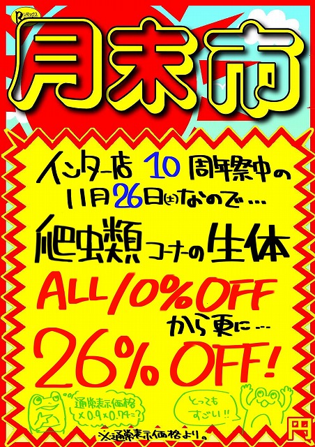 今回は26日ということで、全生体26%OFF‼ですが…