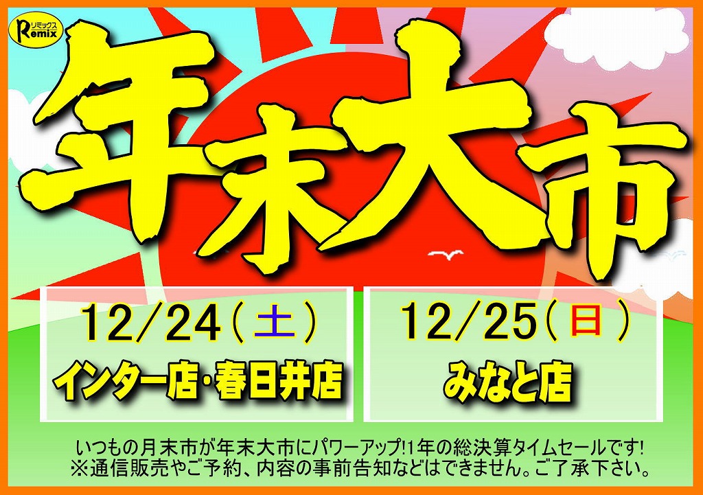 明日は!年末大市ですね!!