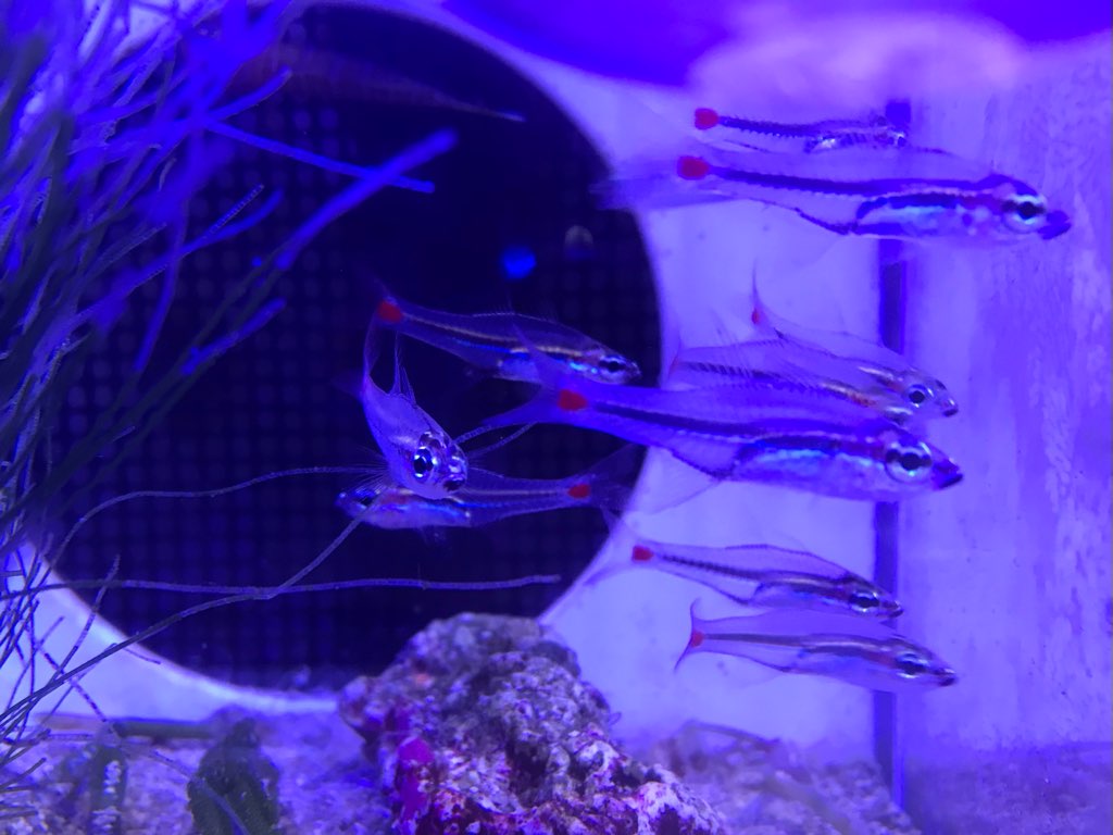 ルリスズメダイと同じようにメタリックブルーが綺麗ですが、そこまで大きくならず、ルリよりは扱いやすい性格です(^^)