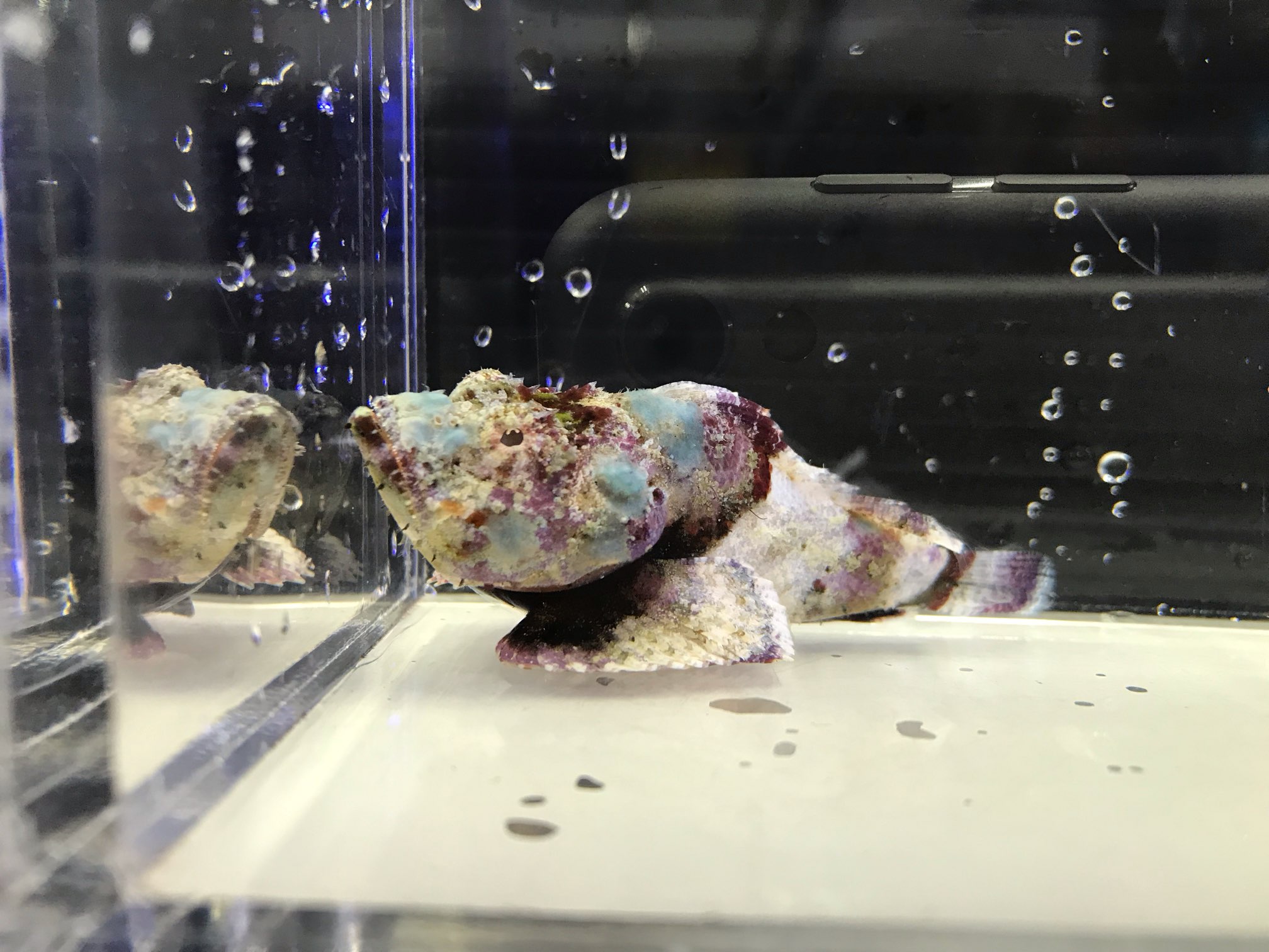 石灰藻のついた岩にそっくりな見た目ですが、
