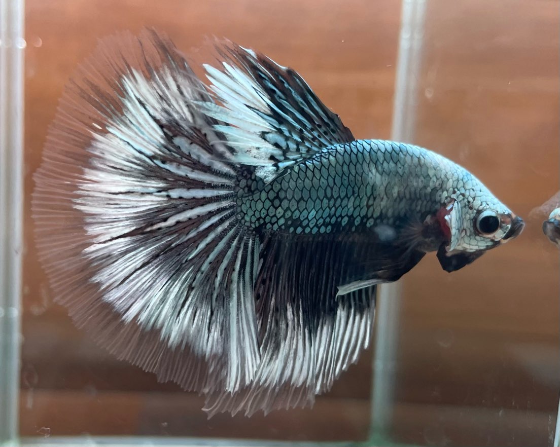 青と白のコントラストが涼し気なベタさんです!二匹入荷しました!個人的に青が好きなので、オススメの二匹です!二匹とも柄の入りが違うのでお気に入りの子を見つけてみてはいかがかな?