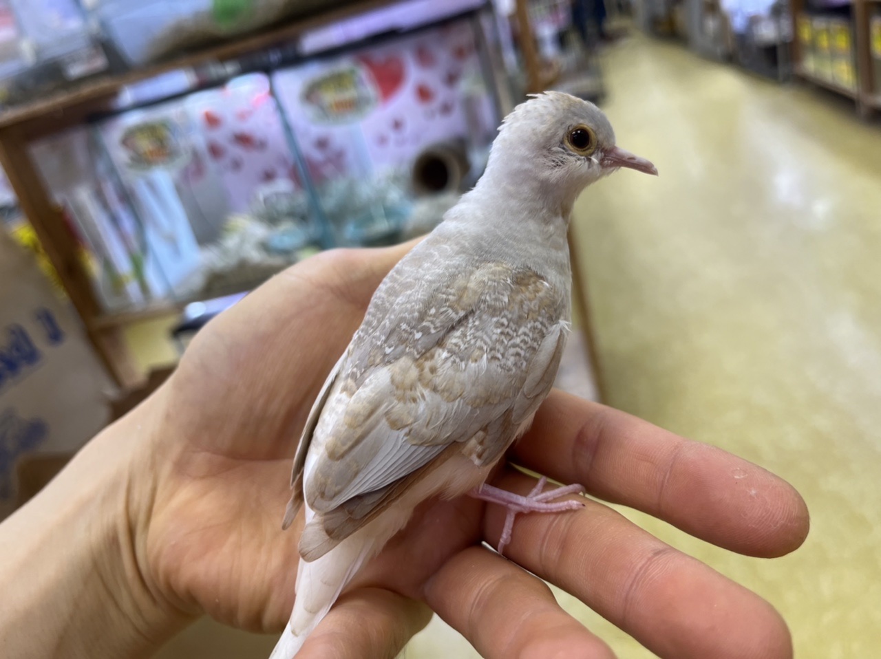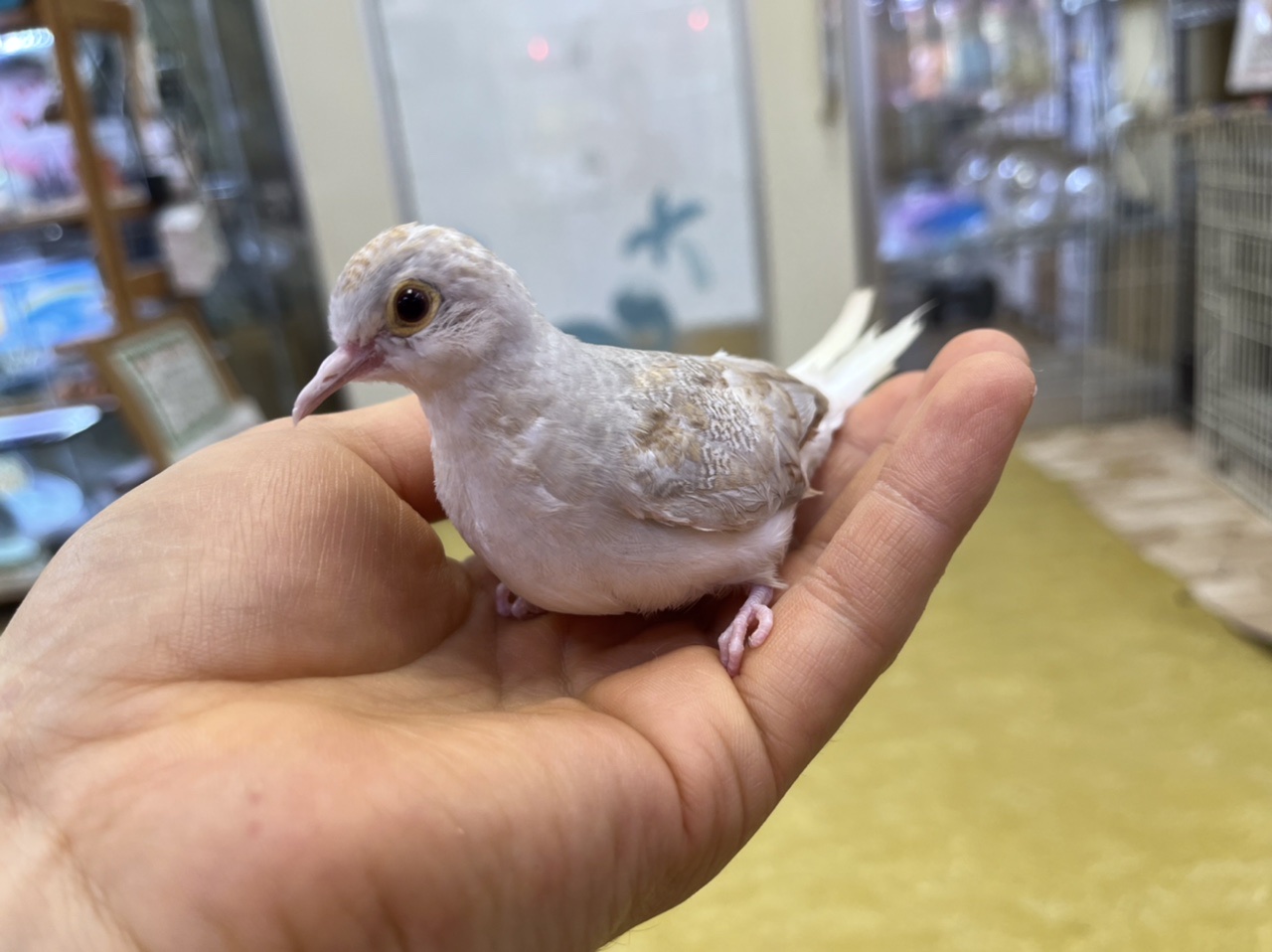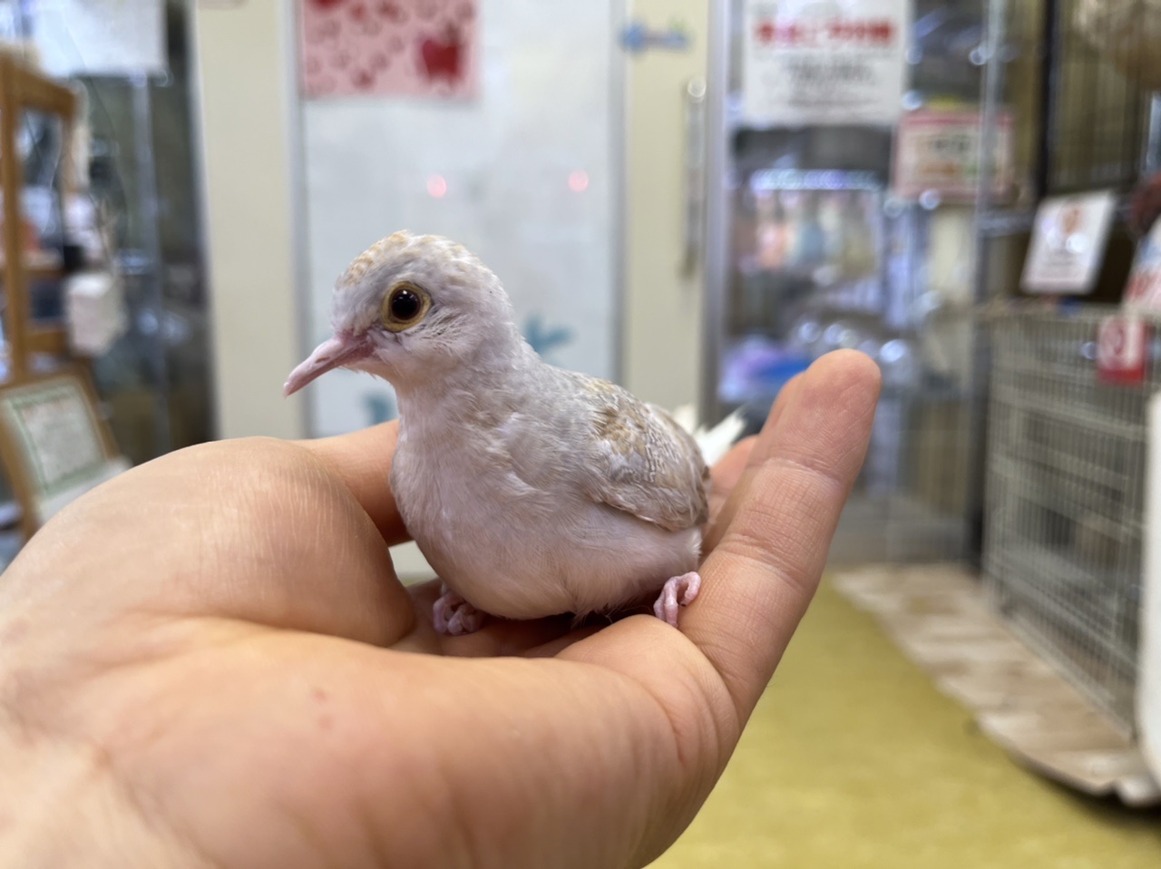 たまーに入店してはすぐにお迎えされていく、最小のハト♪
