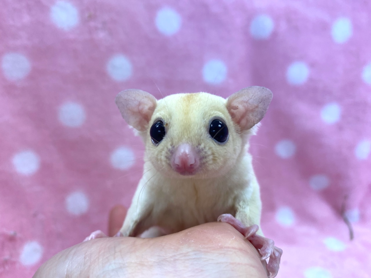 ♦︎フクロモモンガ ピュアホワイト ♂ 丸顔の白系フクモモ!ミルクもフードもゴクゴクモリモリ🍼