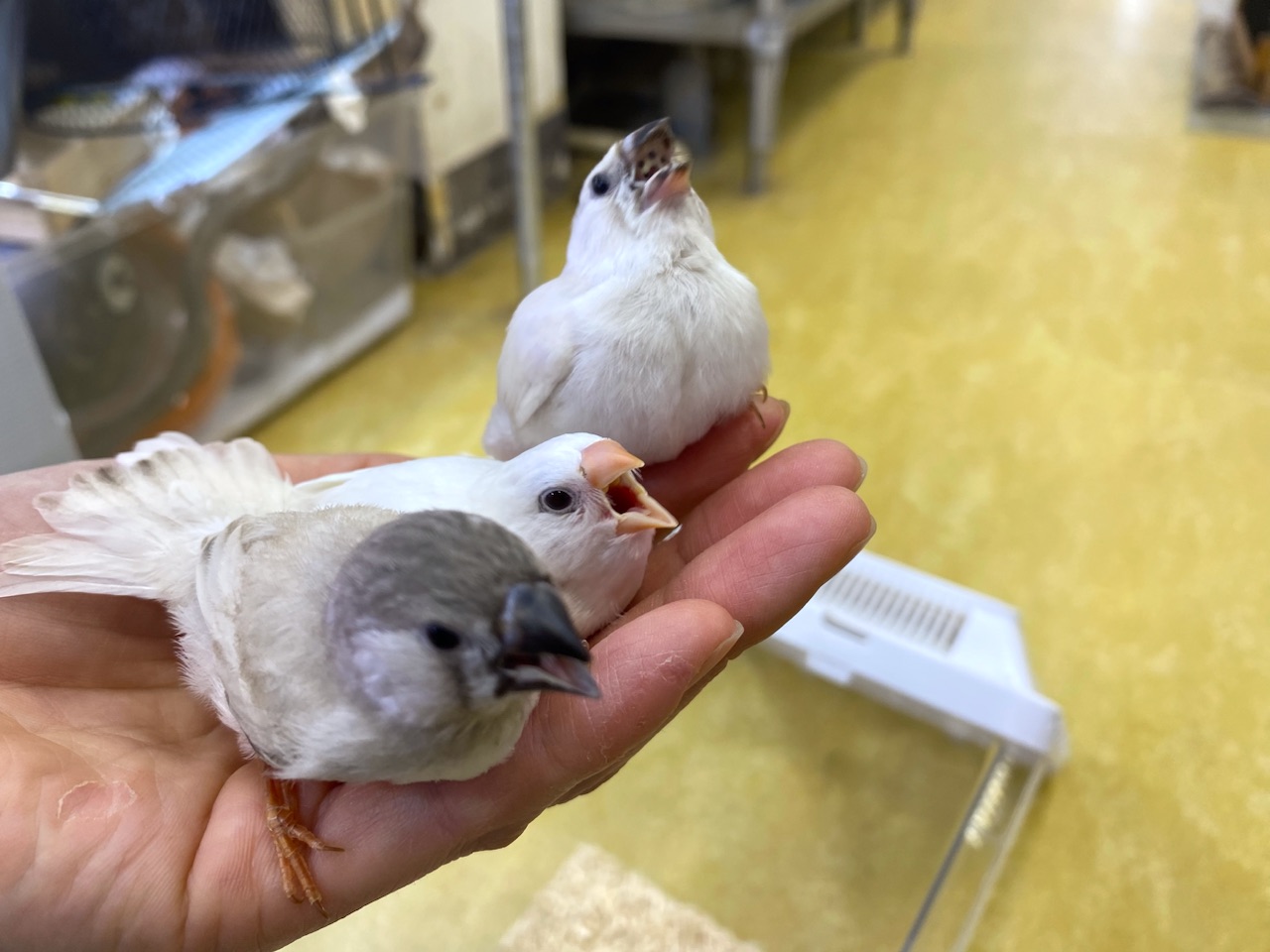 ◇キンカチョウ さし餌モリモリ!3羽います♪