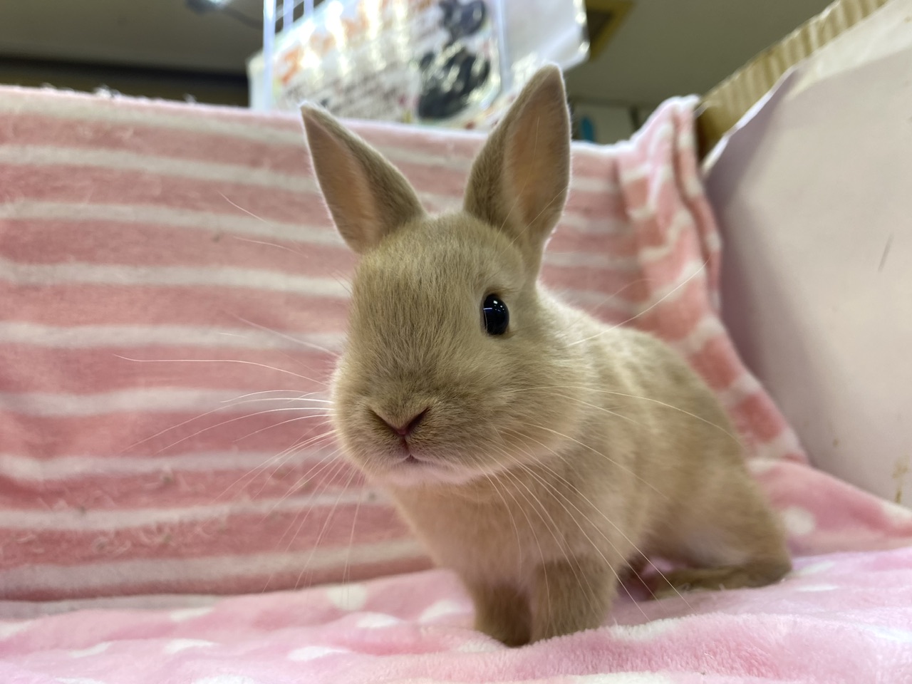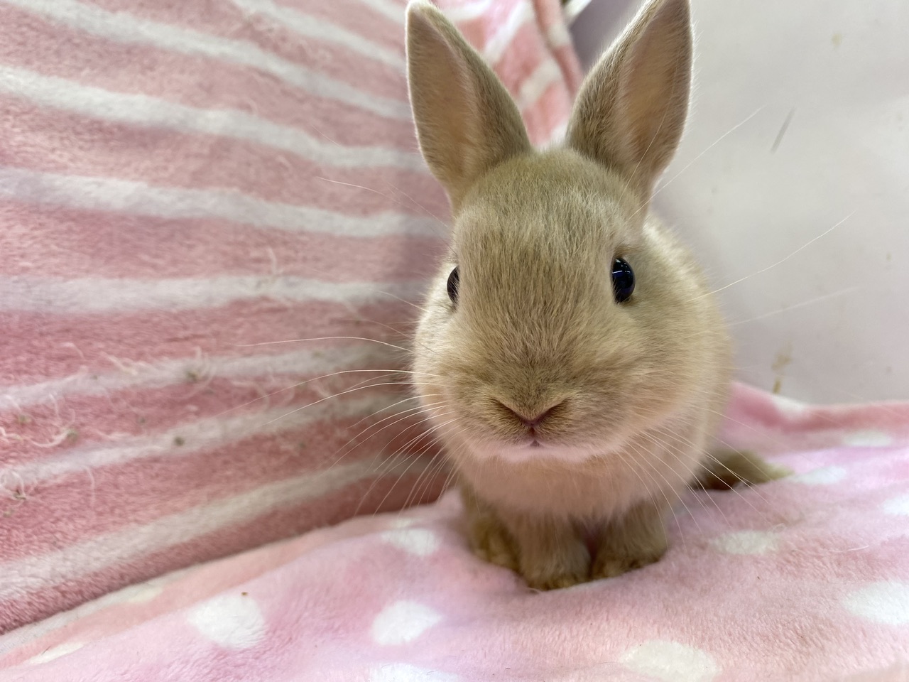 短いお耳、丸っこいお顔、活発的な性格!!うさぎさんの中では一番小柄なサイズになります!!