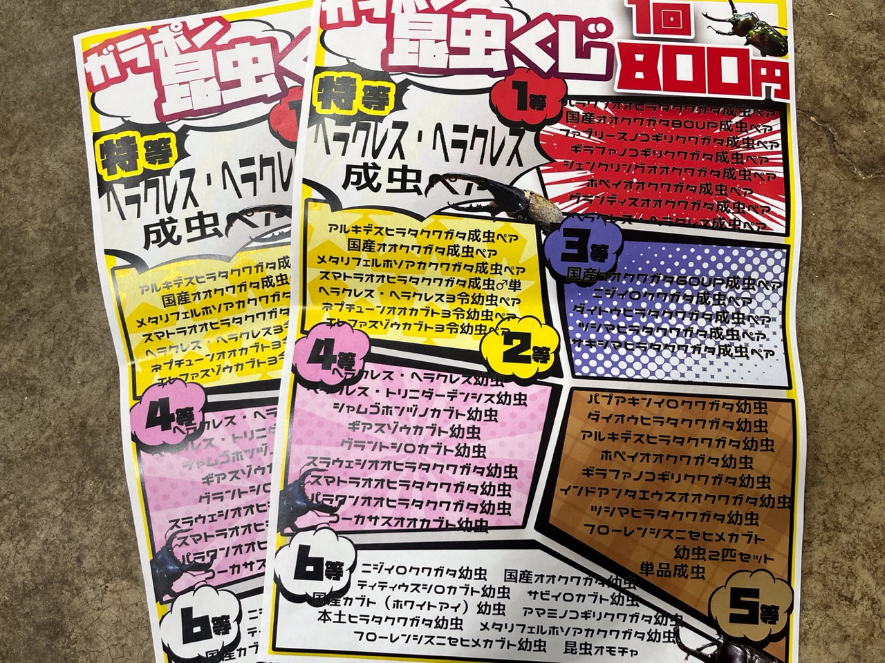 ドキドキわくわくのガラポン昆虫くじを是非回しにご来店下さいませ!