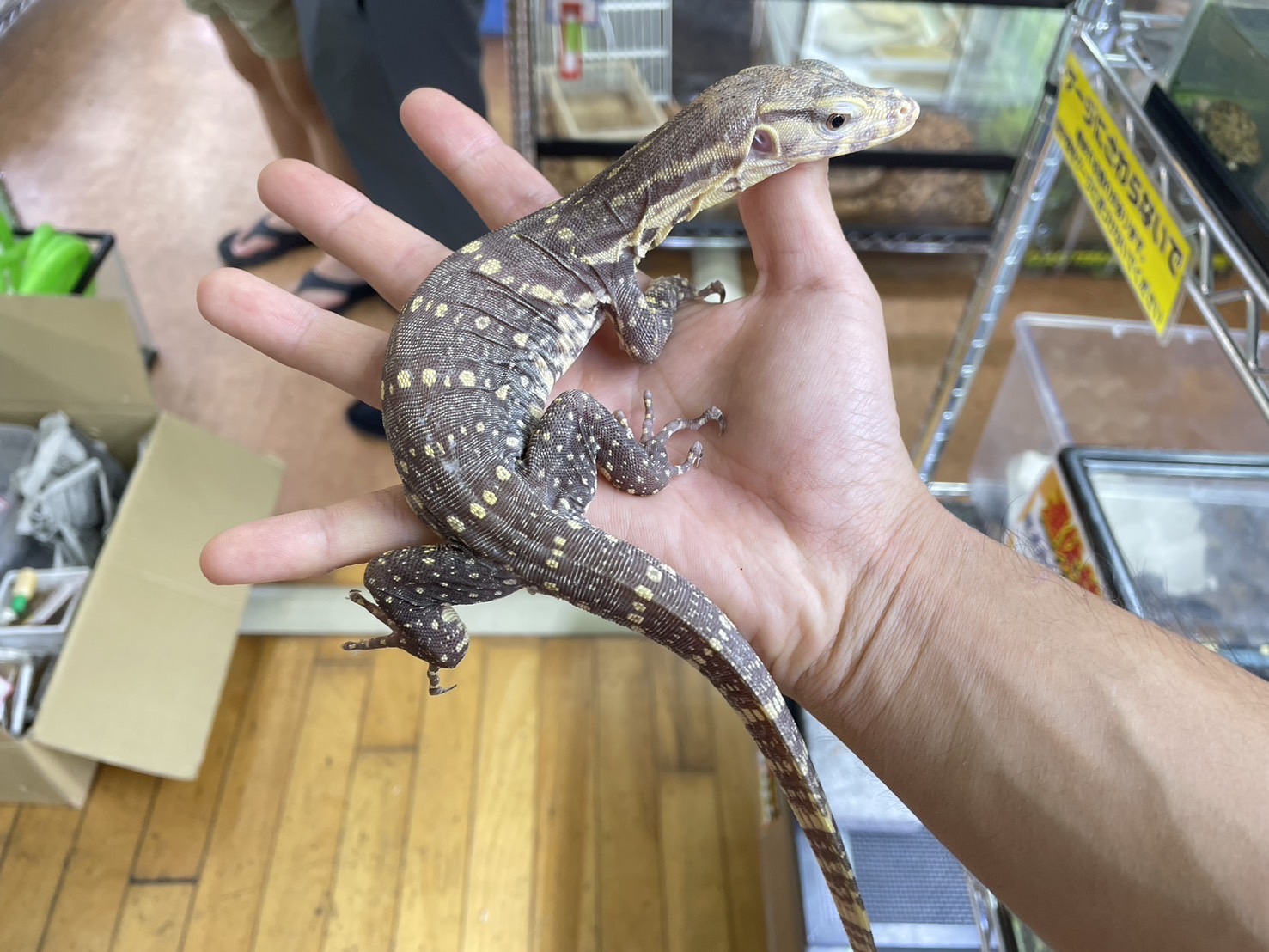 こちらは赤く美しいテグー。 ブラック&ホワイト以上によく慣れる印象で人気の高い本種。 ブログを書いてる間にもお問い合わせを数件頂きました。 店頭でも大きく育った個体が在庫していますがハンドリング余裕です、こちらは2匹入荷。