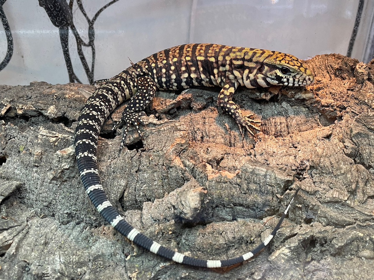 成長すると名前の通りの黒と白のコントラストが美しい美種。 ペットリザードとしても優秀でまるで犬のように慣れ、非常に可愛らしい側面も。 雑食なのでコオロギ、マウスの他フードや野菜なども餌のレパートリーとして与えるとGOODです。 3匹入荷、目指せベタ慣れテグー!