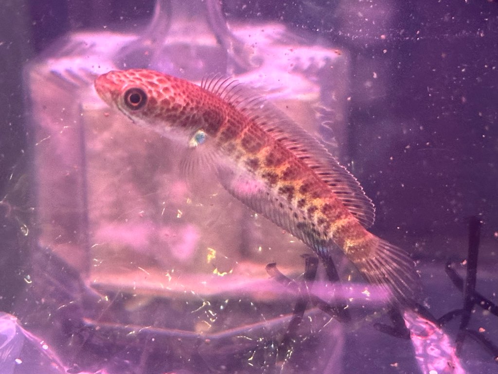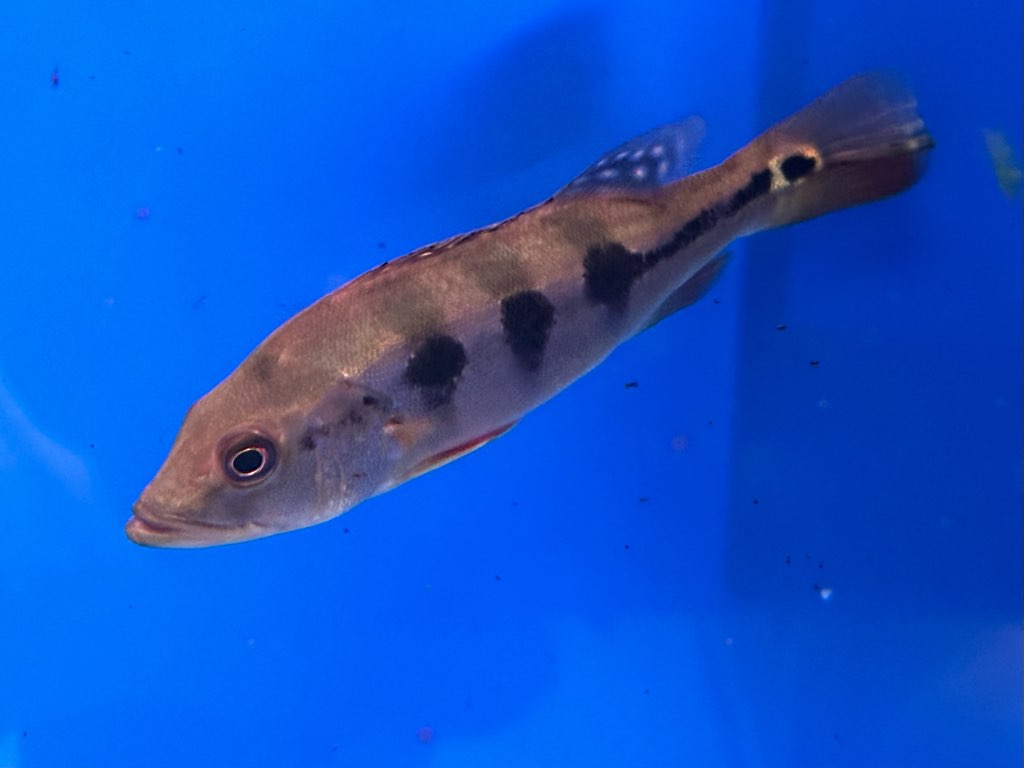 小さすぎずいいサイズ。体側に入る黒斑の周りを金色のスポットが美しく彩る人気種。