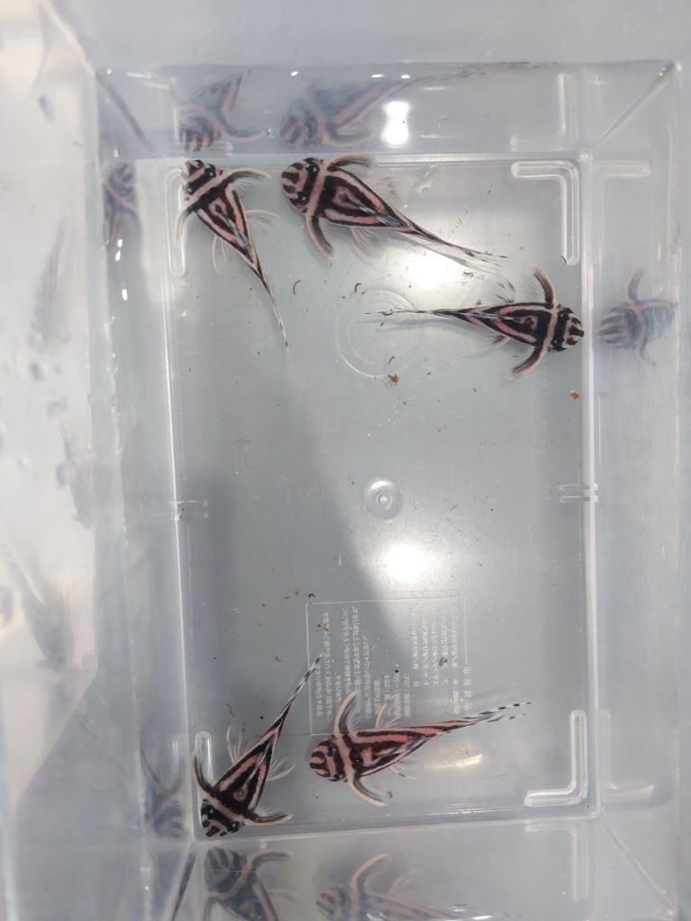 仕入担当の市橋です。インペブリーダー様の所に仕入れにいってきました。国内ブリード個体のインペが20匹以上入荷しました。今週は超久々のゴールデンダルマプレコ、ウルトラスカーレットトリム、タイタニックトリム、ニューインペリアルダップルド、ニューメガクラウンなどなど、周年祭プレコウィークという事で色々魚を集めました。その他にも、ポリプテルス ハイブリッド コンギクス×アンソルギーやクラウンローチ×パキスタンローチなどなど、面白い魚も来てます。