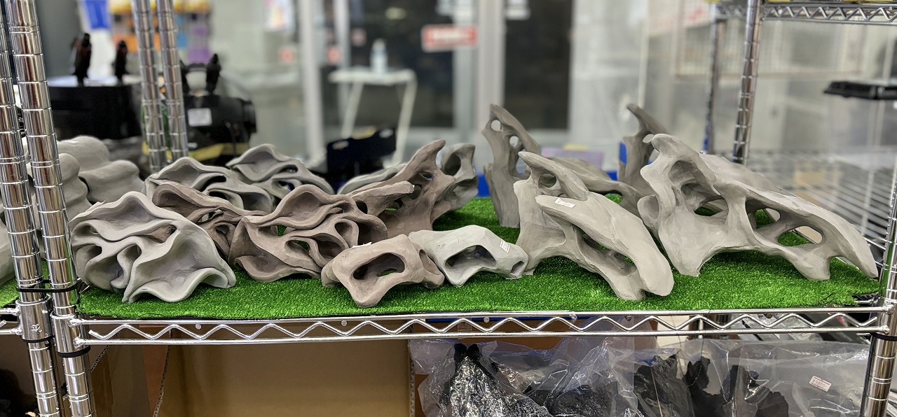 基本型のクラシックアーチタイプ。 アーチ状になっているのでシェルター下部には広々とした空間があり、本体部分はマンションのように様々な形状と大きさの穴があります。