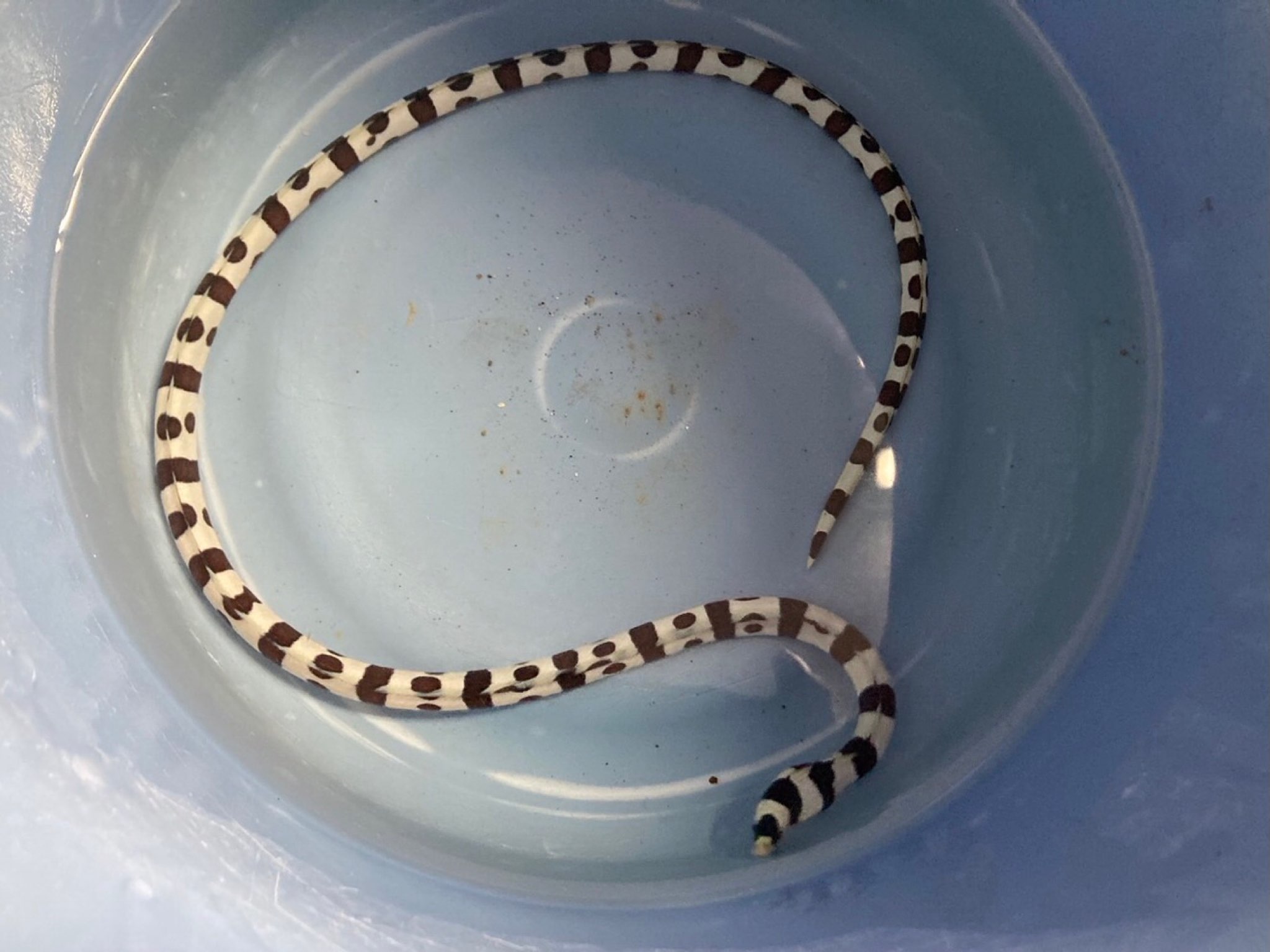 シマとシマの間のスポットが特徴♪ウミヘビの仲間です。