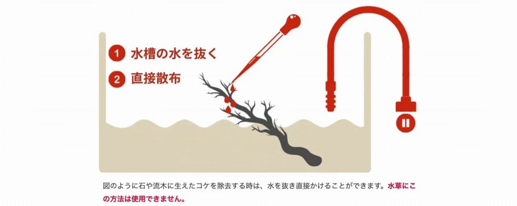 黒ひげコケ、藍藻、サンゴ状のコケ、ほこり状のコケ、スポット(斑点)状のコケ、糸状のコケなど、ほとんどのコケ類に効果的です。