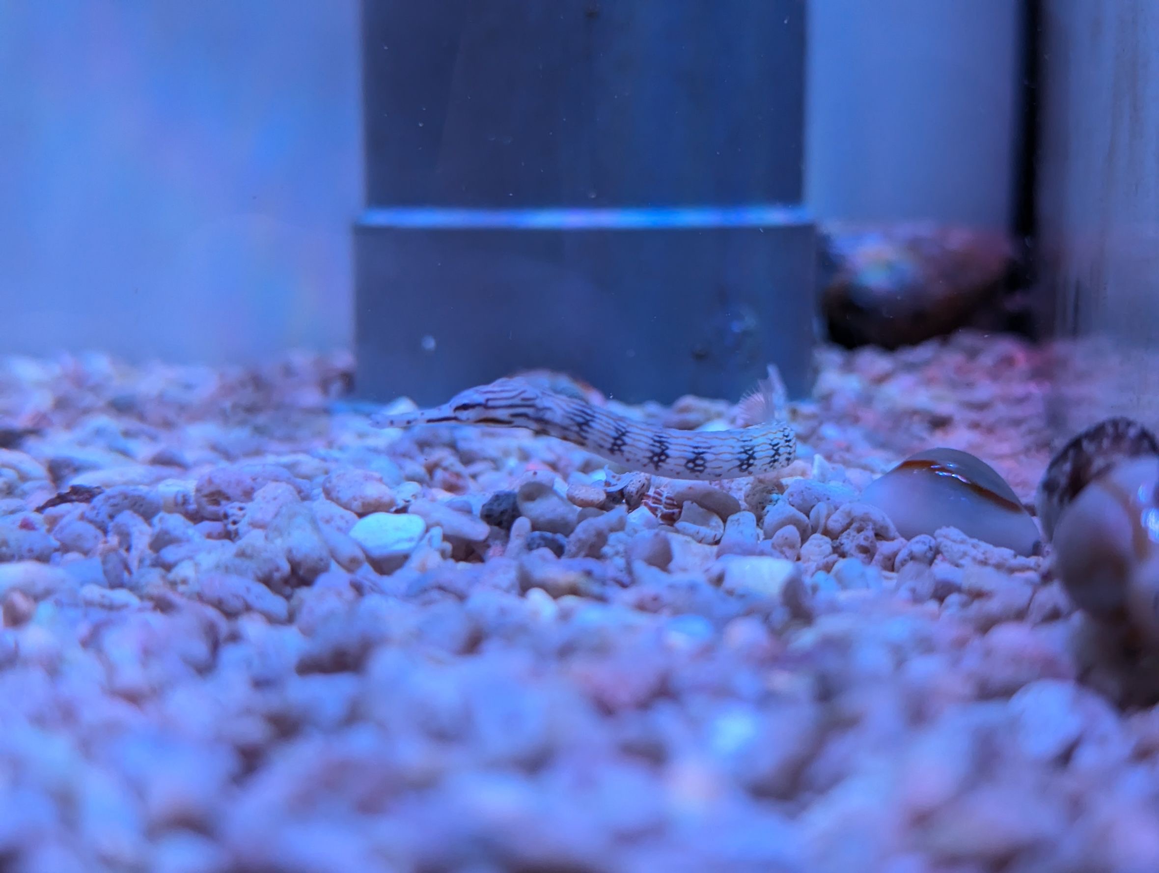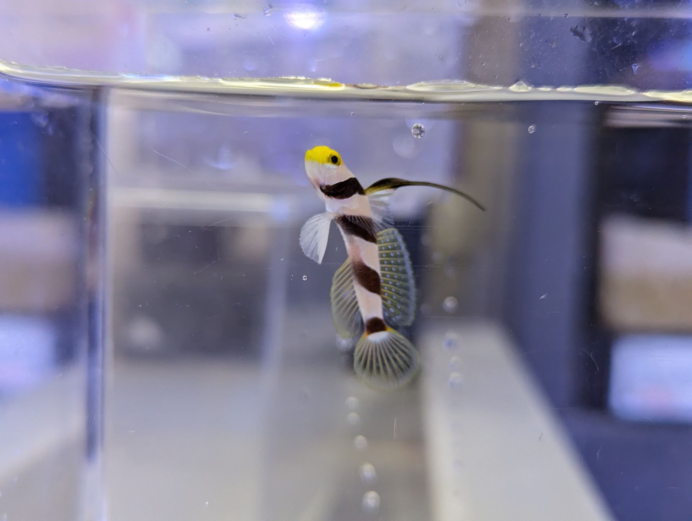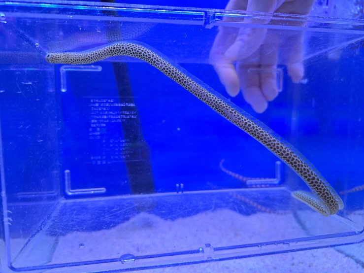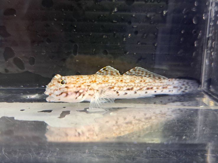 チンアナゴにある大きな斑点は無く、体のベースが少し黄色っぽいのが特徴です。