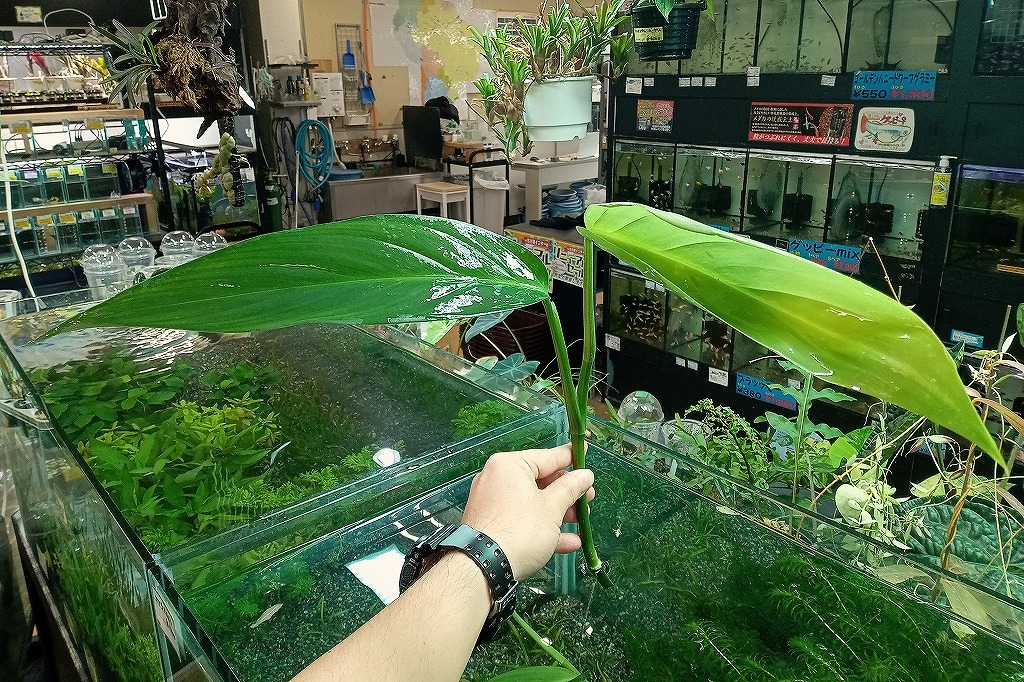 大型のフィロデンドロンで環境が良ければ30cmまでになりますが、水槽の環境に応じてこじんまりするところがあるように思います。