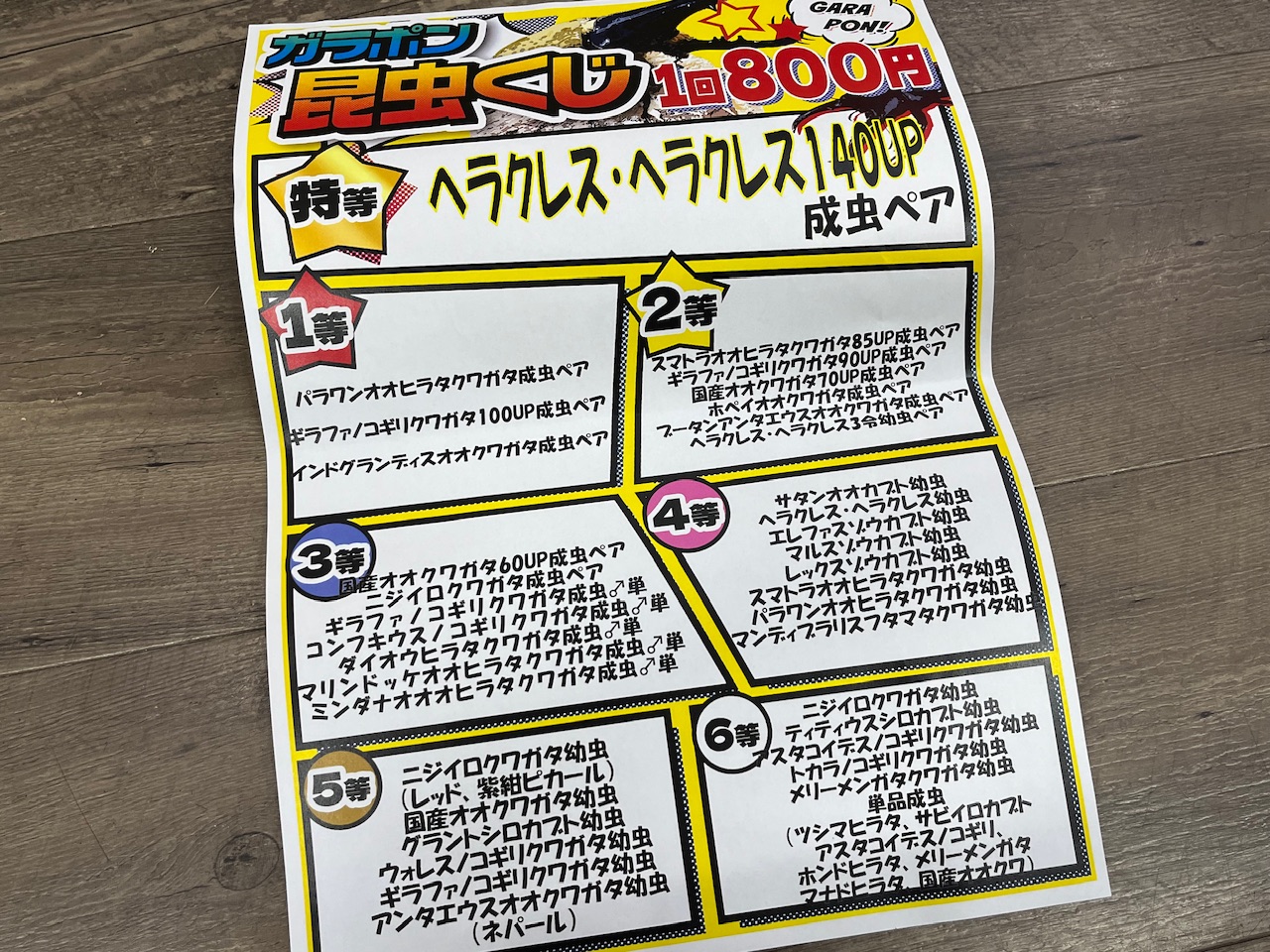 特等にはもちろん、『ヘラクレスオオカブト成虫』をご用意!